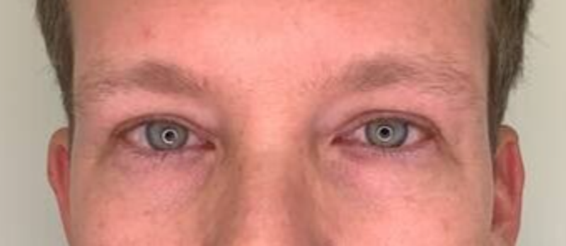 - Antes: párpados caídos de forma asimétrica